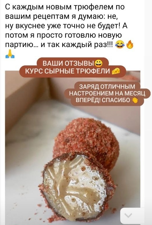 На этом курсе вас ждут удивительные сочетания сыра и шоколада . Порадуйте своих близких. Также вы сможете монетизировать свое хобби, предлагая свои конфеты на заказ!